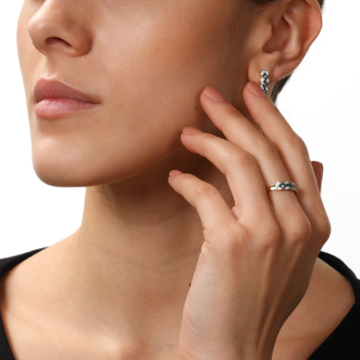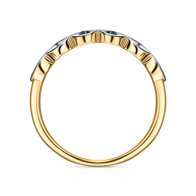 Кольцо с 16 бриллиантами природными, 0.13 карат, огранка круг 57 граней, цвет 3, чистота 6; 5 изумрудами природными, 0.07 карат, цвет 3, чистота 3; Желтое золото 585 пробы.