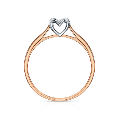 Кольцо с 1 бриллиантом природным, 0.03 карат, огранка круг 57 граней, цвет 3, чистота 6; Розовое и белое золото 585 пробы.