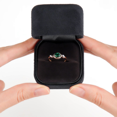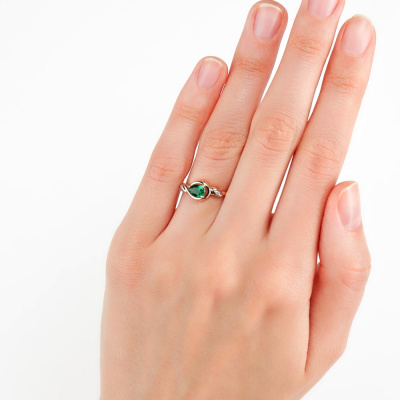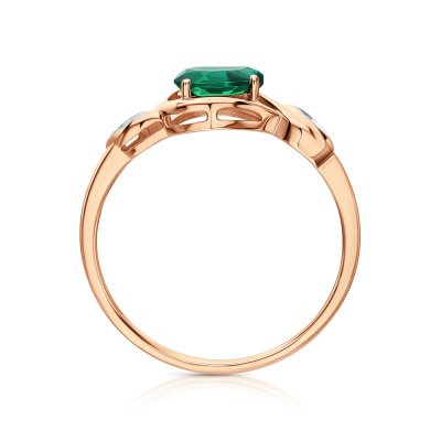 Кольцо с 2 бриллиантами природными, 0.009 карат, огранка круг 17 граней, цвет 2, чистота 2; 1 гидротермальным изумрудом, 0.37 карат; Розовое золото 585 пробы.