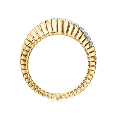 Кольцо с 56 бриллиантами природными, 0.22 карат, огранка круг 57 граней, цвет 3, чистота 6, тип огранки А; Желтое золото 585 пробы.