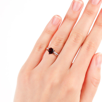 Золотое кольцо с бриллиантами природными и гранатами природными