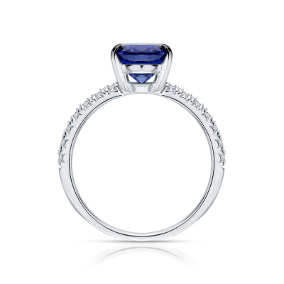 Кольцо с 1 сапфиром выращенным, 2.52 карат; 14 бриллиантами выращенными, 0.18 карат, огранка круг 57 граней, цвет 3, чистота 5, тип огранки А; Белое золото 585 пробы.