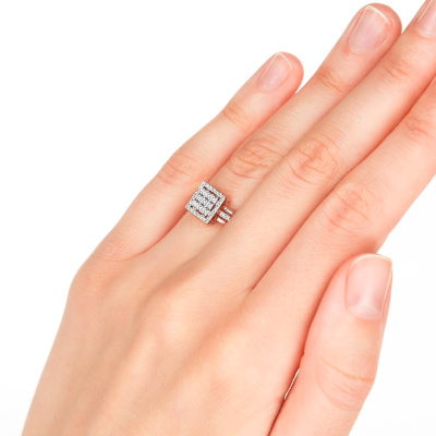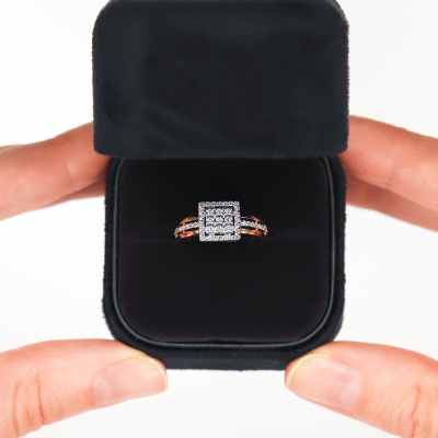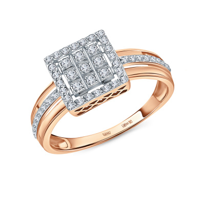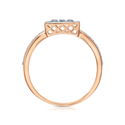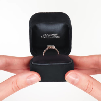 Кольцо с 9 бриллиантами природными, 0.06 карат, огранка круг 57 граней, цвет 3, чистота 6, тип огранки А; 40 бриллиантами природными, 0.14 карат, огранка круг 17 граней, цвет 2, чистота 2, тип огранки А; Розовое золото 585 пробы.