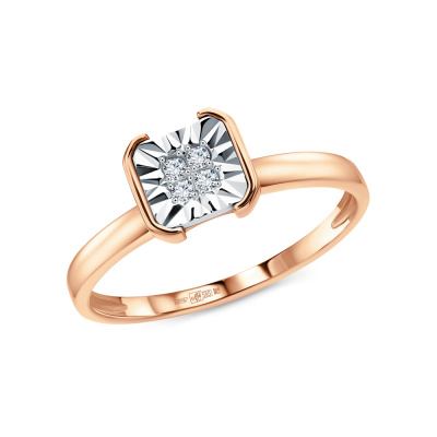 Кольцо с 4 бриллиантами природными, 0.02 карат, огранка круг 57 граней, цвет 3, чистота 6, тип огранки А; Розовое и белое золото 585 пробы.