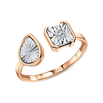 Кольцо с 7 бриллиантами природными, 0.03 карат, огранка круг 17 граней, цвет 2, чистота 2, тип огранки А; Розовое и белое золото 585 пробы.