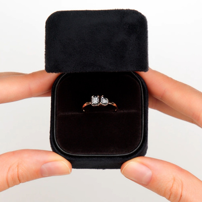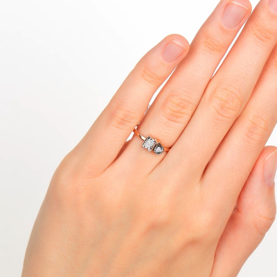 Кольцо с 9 бриллиантами природными, 0.03 карат, огранка круг 17 граней, цвет 2, чистота 2, тип огранки А; Розовое и белое золото 585 пробы.