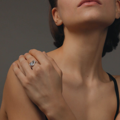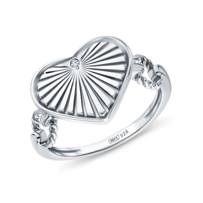 Кольцо с 1 бриллиантом природным, 0.008 карат, огранка круг 17 граней, цвет 3, чистота 3, тип огранки Б; Серебро 925 пробы.
