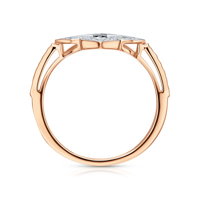 Кольцо с 28 бриллиантами природными, 0.09 карат, огранка круг 17 граней, цвет 2, чистота 3, тип огранки А; Розовое и белое золото 585 пробы.