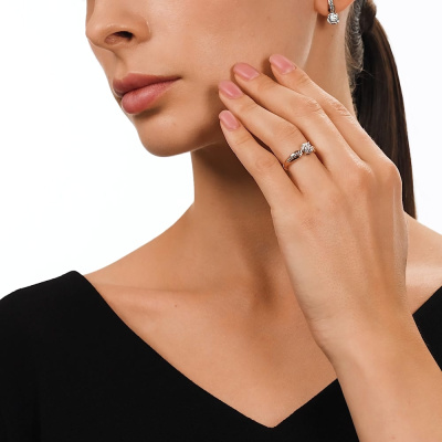 Кольцо с 1 бриллиантом природным, 0.02 карат, огранка круг 57 граней, цвет 3, чистота 6, тип огранки А; Розовое и белое золото 585 пробы.