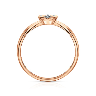 Кольцо с 1 бриллиантом природным, 0.005 карат, огранка круг 17 граней, цвет 2, чистота 2, тип огранки А; Розовое и белое золото 585 пробы.