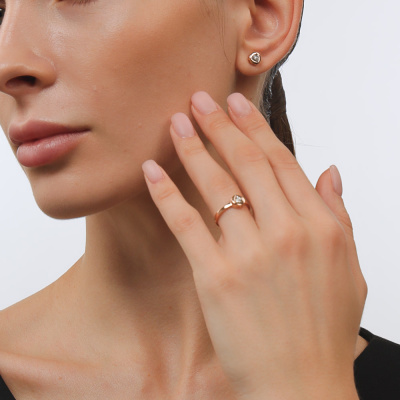 Кольцо с 1 бриллиантом природным, 0.009 карат, огранка круг 57 граней, цвет 3, чистота 6, тип огранки А; Розовое и белое золото 585 пробы.