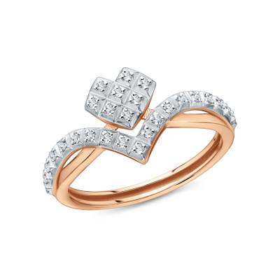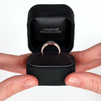 Кольцо с 27 бриллиантами природными, 0.1 карат, огранка круг 17 граней, цвет 2, чистота 2, тип огранки А; Розовое золото 585 пробы.