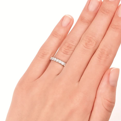 Кольцо с 7 бриллиантами природными, 0.41 карат, огранка круг 57 граней, цвет 3, чистота 6, тип огранки А; Белое золото 585 пробы.