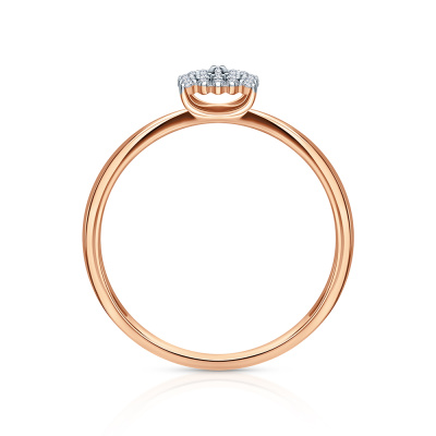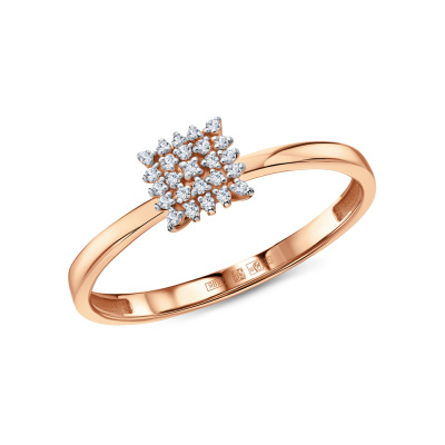 Кольцо с 25 бриллиантами природными, 0.06 карат, огранка круг 17 граней, цвет 2, чистота 2, тип огранки А; Розовое золото 585 пробы.