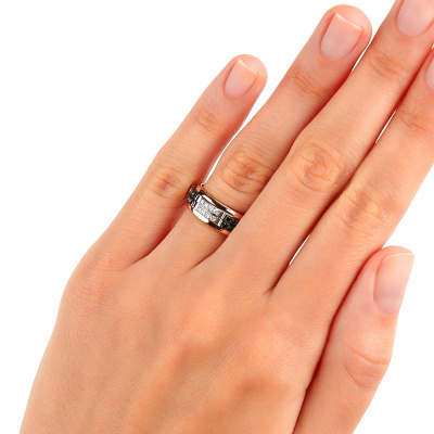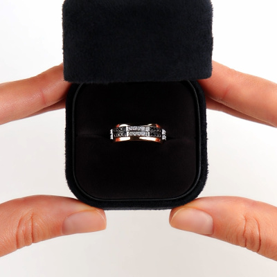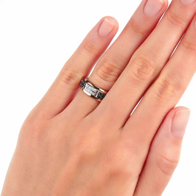 Кольцо с 32 бриллиантами природными, 0.26 карат, огранка круг 57 граней, цвет 3, чистота 6, тип огранки А; 32 бриллиантами черными природными облагороженными, 0.3 карат, огранка круг 57 граней, цвет 7, чистота 6, тип огранки А; Розовое золото 585 пробы.