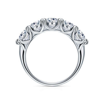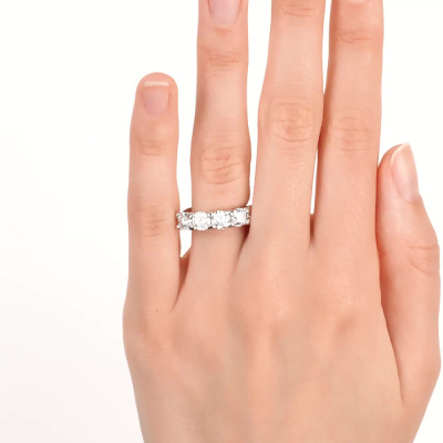 Кольцо с 5 бриллиантами выращенными, 2.51 карат, огранка круг 57 граней, цвет 4, чистота 5, тип огранки А; Белое золото 585 пробы.