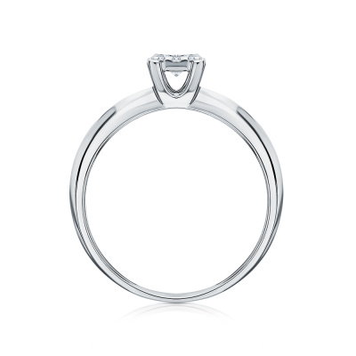 Кольцо с 1 бриллиантом природным, 0.05 карат, огранка круг 57 граней, цвет 3, чистота 6, тип огранки А; 4 бриллиантами природными, 0.05 карат, огранка круг 57 граней, цвет 3, чистота 6, тип огранки А; 4 бриллиантами природными, 0.01 карат, огранка круг 57 граней, цвет 3, чистота 6, тип огранки А; Белое золото 585 пробы.