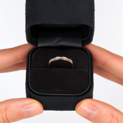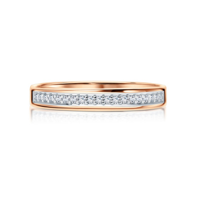 Кольцо с 19 бриллиантами природными, 0.09 карат, огранка круг 17 граней, цвет 2, чистота 2, тип огранки А; Розовое золото 585 пробы.