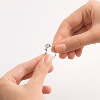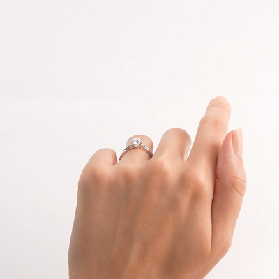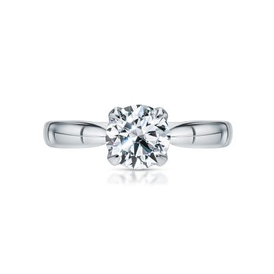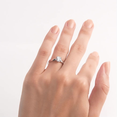 Кольцо с 1 бриллиантом природным, 1 карат, огранка круг 57 граней, цвет 3, чистота 8, тип огранки А; Белое золото 585 пробы.