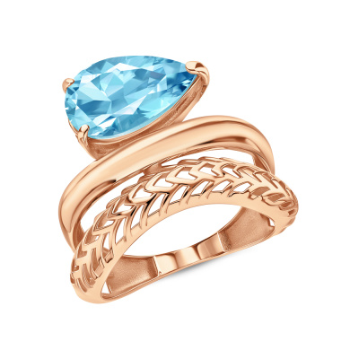 Кольцо с 1 топазом скай природным, 3.34 карат; Розовое золото 585 пробы.