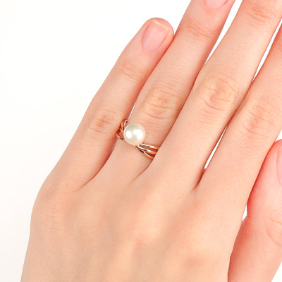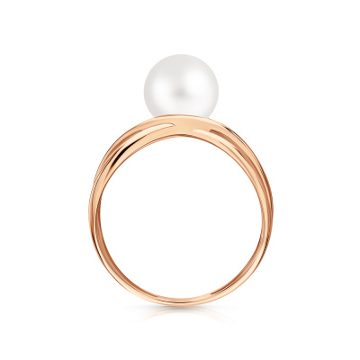 Кольцо с 1 жемчугом пресноводным культивированным белым; Розовое золото 585 пробы.