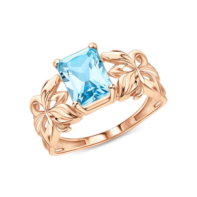 Кольцо с 1 топазом скай природным, 1.89 карат; Розовое золото 585 пробы.