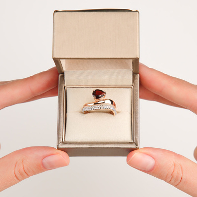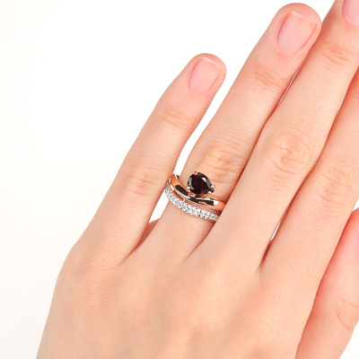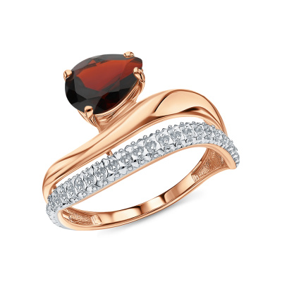 Кольцо с 1 гранатом природным, 1.21 карат; Розовое золото 585 пробы.
