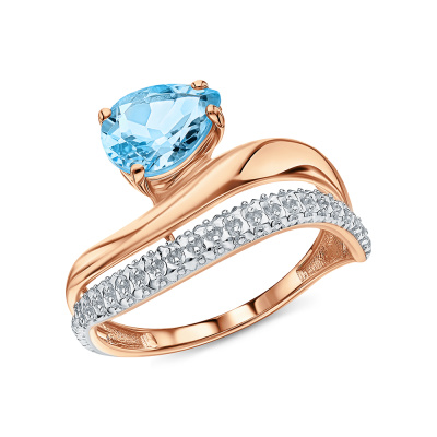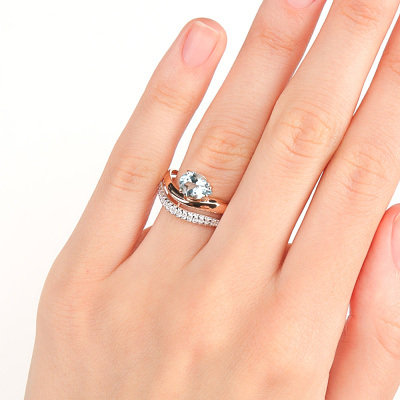 Кольцо с 1 топазом скай природным, 1.29 карат; Розовое золото 585 пробы.