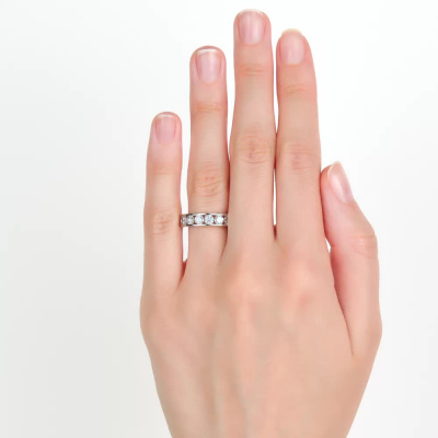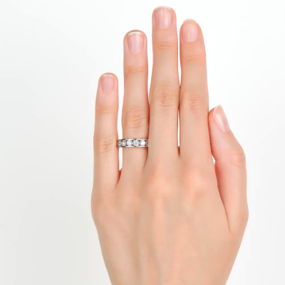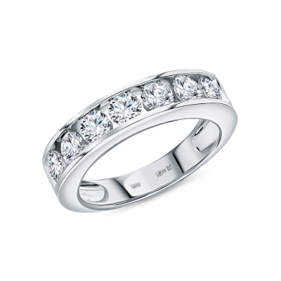 Кольцо с 7 бриллиантами выращенными, 1.051 карат, огранка круг 57 граней, цвет 3, чистота 5, тип огранки А; Белое золото 585 пробы.