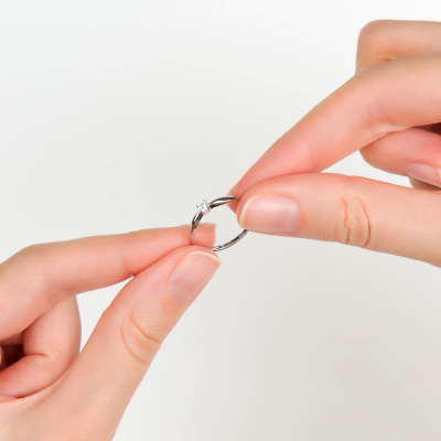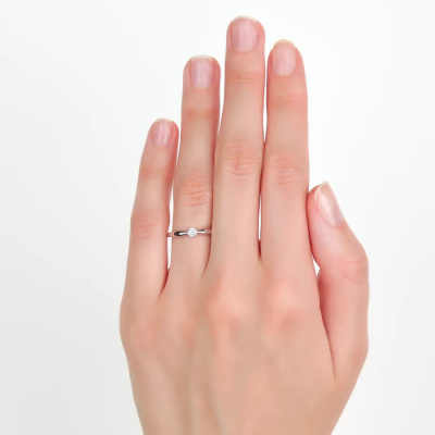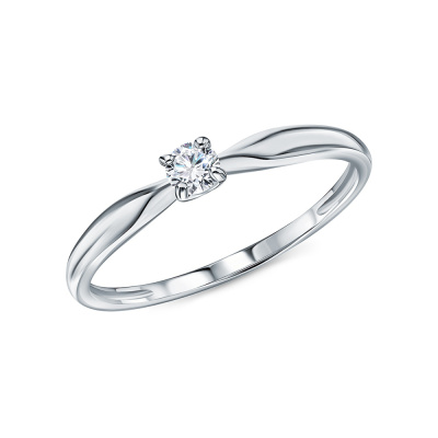 Кольцо с 1 бриллиантом выращенным, 0.105 карат, огранка круг 57 граней, цвет 3, чистота 5, тип огранки А; Белое золото 585 пробы.