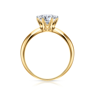 Кольцо с 1 бриллиантом выращенным, 1.01 карат, огранка круг 57 граней, цвет 4, чистота 5, тип огранки А; Желтое золото 585 пробы.