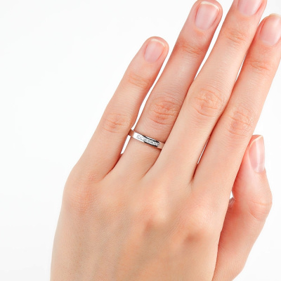 Кольцо с 7 бриллиантами природными, 0.05 карат, огранка круг 57 граней, цвет 4, чистота 5, тип огранки А; Белое золото 585 пробы.