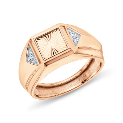 Кольцо с 2 бриллиантами природными, 0.02 карат, огранка круг 57 граней, цвет 3, чистота 6; 4 бриллиантами природными, 0.01 карат, огранка круг 17 граней, цвет 2, чистота 2; Розовое золото 585 пробы.