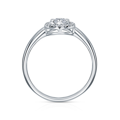 Кольцо с 1 бриллиантом природным, 0.04 карат, огранка круг 57 граней, цвет 3, чистота 6, тип огранки А; 2 бриллиантами природными, 0.04 карат, огранка круг 57 граней, цвет 3, чистота 6, тип огранки А; 4 бриллиантами природными, 0.05 карат, огранка круг 57 граней, цвет 3, чистота 6, тип огранки А; 1 бриллиантом природным, 0.008 карат, огранка круг 57 граней, цвет 3, чистота 6, тип огранки А; 20 бриллиантами природными, 0.07 карат, огранка круг 57 граней, цвет 2, чистота 2, тип огранки А; Белое золото 585 пробы.