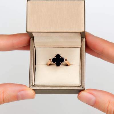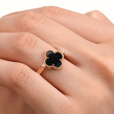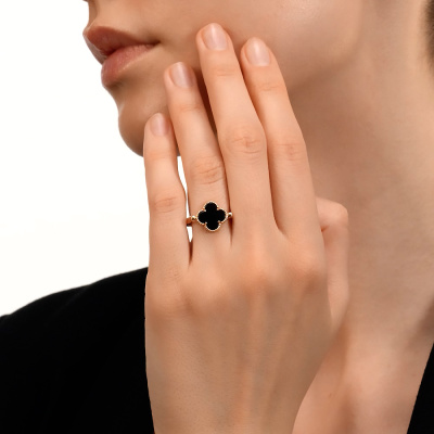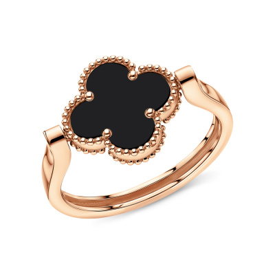 Кольцо с 1 ониксом черным природным, 1.15 карат; Розовое золото 585 пробы.