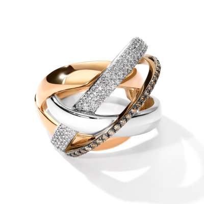 Золотое кольцо с бриллиантами и бриллиантами коньячными природными