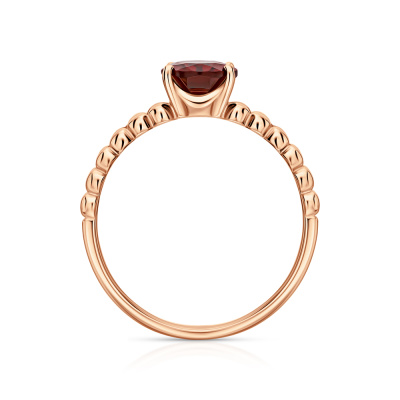 Кольцо с 22 бриллиантами природными, 0.07 карат, огранка круг 17 граней, цвет 2, чистота 2, тип огранки А; 1 гранатом природным, 1.46 карат; Розовое золото 585 пробы.
