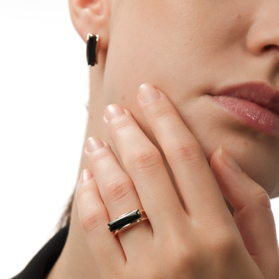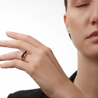 Кольцо с 1 ониксом черным природным, 1.765 карат; 1 ониксом черным природным, 1.765 карат; Розовое золото 585 пробы.