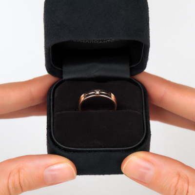 Кольцо с 1 бриллиантом природным, 0.01 карат, огранка круг 57 граней, цвет 3, чистота 6, тип огранки А; Розовое золото 585 пробы.