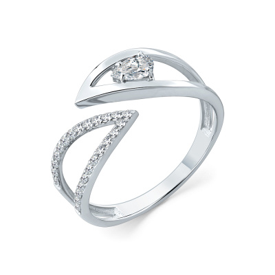 Кольцо с 1 бриллиантом природным, 0.19 карат, огранка груша 56 граней, цвет 2, чистота 4, тип огранки А; 24 бриллиантами природными, 0.16 карат, огранка круг 57 граней, цвет 3, чистота 5, тип огранки А; Белое золото 585 пробы.