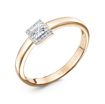 Кольцо с 1 бриллиантом природным, 0.01 карат, огранка круг 57 граней, цвет 3, чистота 6, тип огранки А; 16 бриллиантами природными, 0.02 карат, огранка круг 17 граней, цвет 2, чистота 3, тип огранки А; Розовое золото 585 пробы.