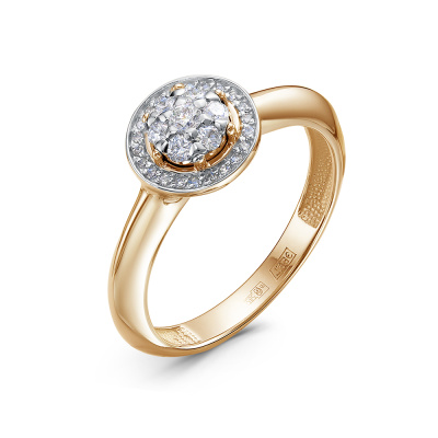 Кольцо с 1 бриллиантом природным, 0.04 карат, огранка круг 57 граней, цвет 3, чистота 6, тип огранки А; 6 бриллиантами природными, 0.11 карат, огранка круг 57 граней, цвет 3, чистота 6, тип огранки А; 22 бриллиантами природными, 0.04 карат, огранка круг 17 граней, цвет 2, чистота 3, тип огранки А; Розовое золото 585 пробы.