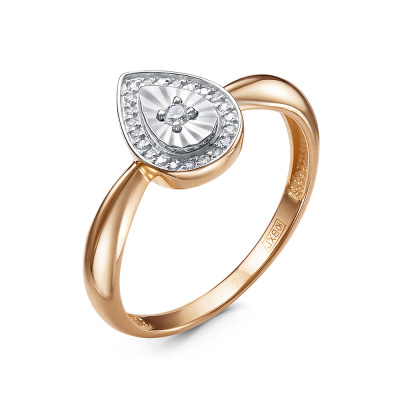 Кольцо с 1 бриллиантом природным, 0.02 карат, огранка круг 57 граней, цвет 3, чистота 6, тип огранки А; 22 бриллиантами природными, 0.03 карат, огранка круг 17 граней, цвет 2, чистота 3, тип огранки А; Розовое золото 585 пробы.