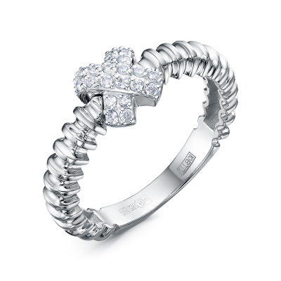 Кольцо с 18 бриллиантами природными, 0.13 карат, огранка круг 57 граней, цвет 3, чистота 6, тип огранки А; 2 бриллиантами природными, 0.008 карат, огранка круг 17 граней, цвет 2, чистота 3, тип огранки А; Белое золото 585 пробы.