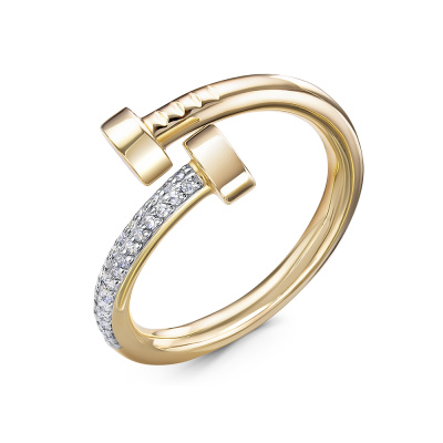 Кольцо с 30 бриллиантами природными, 0.1 карат, огранка круг 17 граней, цвет 2, чистота 3, тип огранки А; Желтое золото 585 пробы.