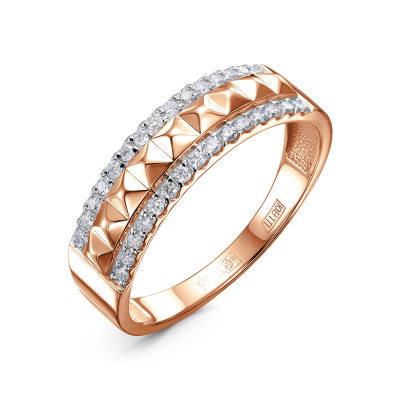 Кольцо с 30 бриллиантами природными, 0.21 карат, огранка круг 57 граней, цвет 3, чистота 6, тип огранки А; Розовое золото 585 пробы.