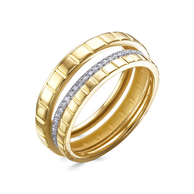 Кольцо с 29 бриллиантами природными, 0.11 карат, огранка круг 17 граней, цвет 2, чистота 3, тип огранки А; Желтое золото 585 пробы.