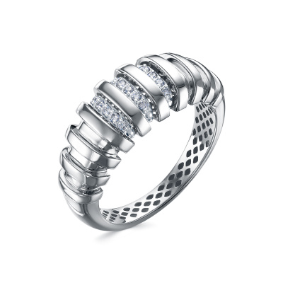 Кольцо с 15 бриллиантами природными, 0.1 карат, огранка круг 57 граней, цвет 3, чистота 6, тип огранки А; Белое золото 585 пробы.