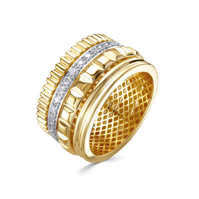 Кольцо с 35 бриллиантами природными, 0.52 карат, огранка круг 57 граней, цвет 3, чистота 6, тип огранки А; Желтое золото 585 пробы.