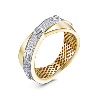 Кольцо с 112 бриллиантами природными, 0.4 карат, огранка круг 17 граней, цвет 2, чистота 3, тип огранки А; Желтое золото 585 пробы.